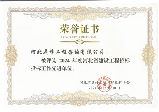 鼎峰榮譽 | 榮獲“2024年度河北省建設工程招投標工作先進單位”稱號